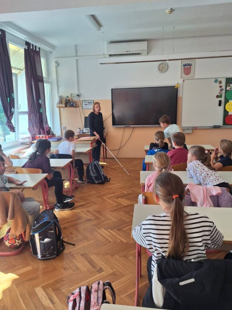 Učenici su saznali kako se slijepi ljudi snalaze u svakodnevnim situacijama, tko im pruža pomoć te kako im pomagala poput bijelog štapa olakšavaju kretanje i samostalnost. Posebno zanimljiv dio predavanja bile su igre namijenjene slijepim osobama, koje su učenicima na zanimljiv način pokazale kako izgleda svijet bez vida.