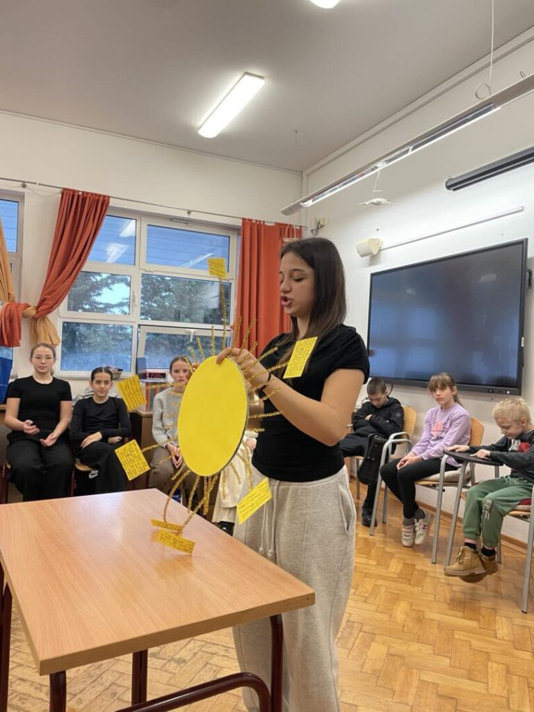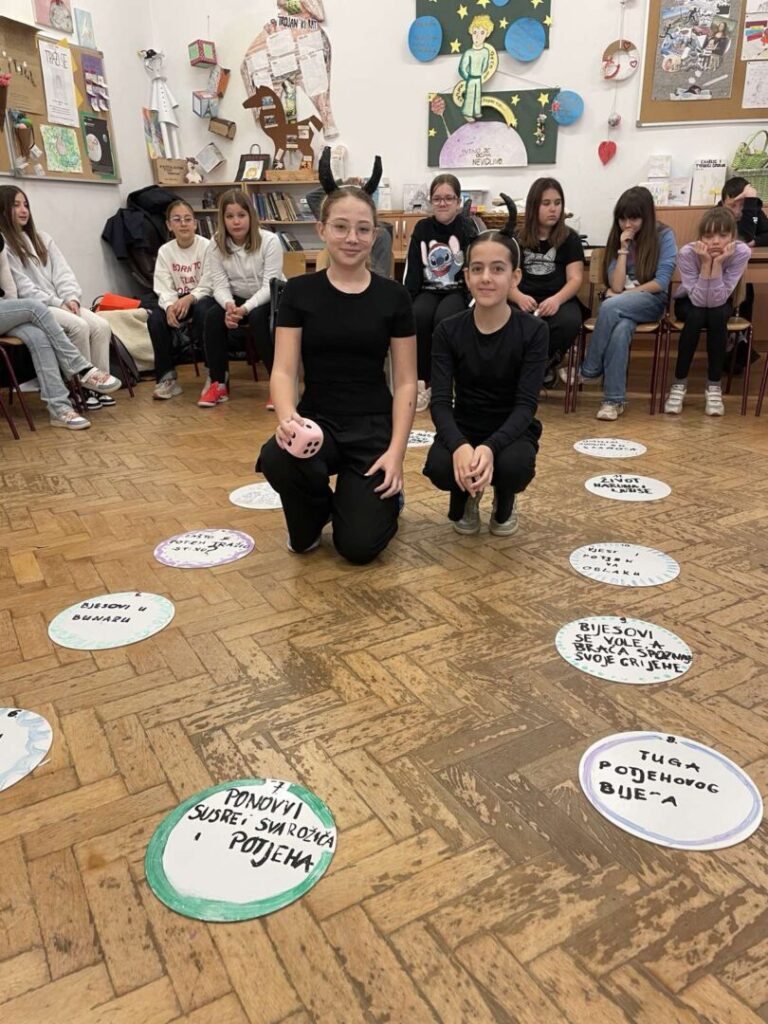 Kada stariji učenici preuzmu ulogu pripovjedača, a mlađi postanu pažljivi slušatelji, učenje dobiva novu dimenziju – postaje bliže, zanimljivije i iskrenije. Četvrtaši su za lektiru čitali priče Šuma Striborova i Regoč, a šestaši Ribar Palunko i njegova žena, Kako je Potjeh tražio istinu i Sunce djever i Neva Nevičica. Na zajedničkom lektirnom susretu učenici 6.b razreda na kreativan su način predstavili pročitane bajke učenicima 4.b razreda i upoznali ih s raznolikošću kreativnih pristupa lektiri: kroz različite oblike interpretacije, pripovijedanja, scenskog izraza pa i igara bajke su oživjele pred publikom koja ih je nedavno i sama upoznala, ali iz druge perspektive.