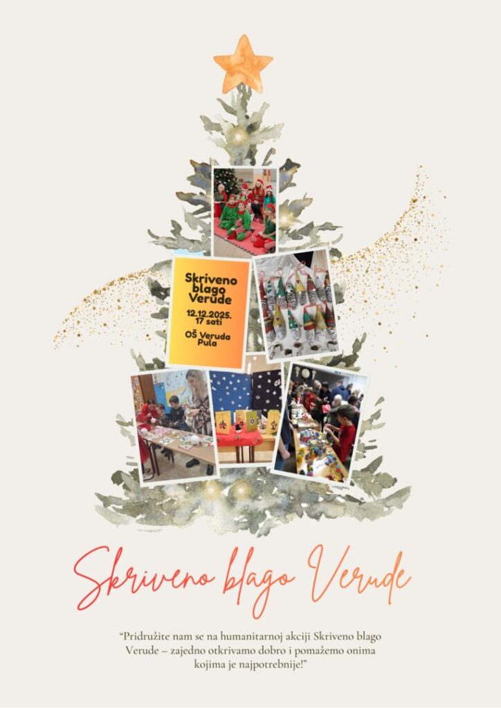 pozivamo vas na ovogodišnju humanitarnu akciju Skriveno blago Verude koja će se održati 12. prosinca 2025. u 17 sati u prostorima Osnovne škole Veruda.